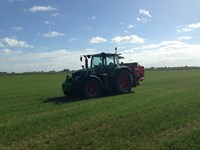 GPS Gestuurd kunstmeststrooien, met een variabele werkbreedte.